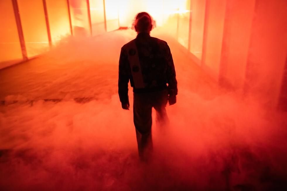 Golvet på intimscenen på Rogaland Teater skrår oppover, vi er på de skrå bredder. Det er kanskje et hint til det klassiske teateret og den klassiske kunsten Unge Werther hører til. Veggene i scenerommet smalner innover. De er laget av tykk plast, eller plexiglass, og gir rommet et rent og moderne preg. I taket henger neonlysrør. Golvet er farget gult, og i starten av stykket farger lyset veggene blålige. Disse fargene gir assosiasjoner til de fargene hovedpersonen i Goethes roman fra 1774, gikk kledd i. Han hadde en blå livkjole og gul vest. Da boka kom ut ble dette høyeste mote og ytre tegn på en følsomhetsbølge blant ungdommen. Det er Philip Isaksen som har skapt scenografi og lysdesign som bidrar så fint til helheten.