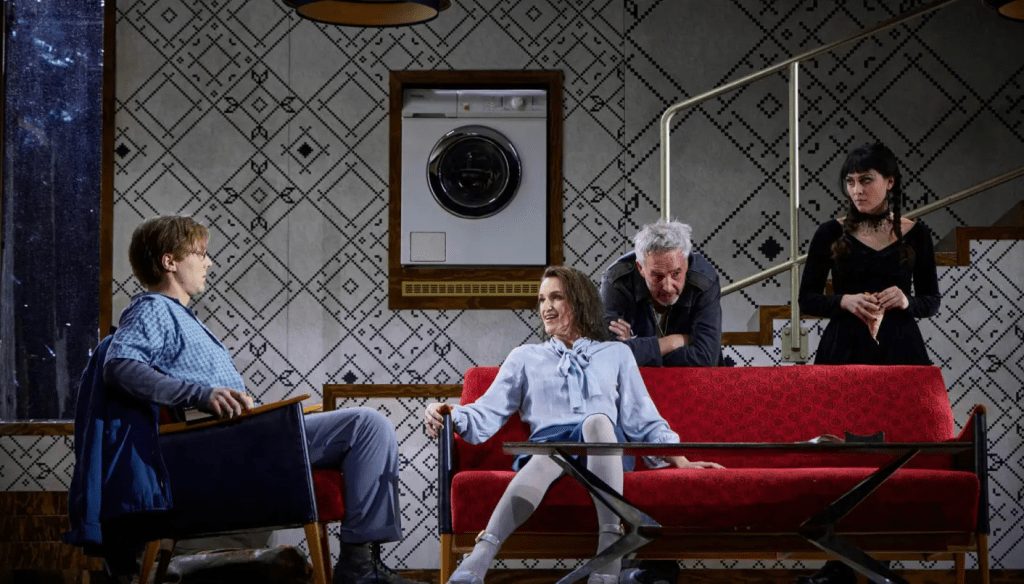 Det denne oppsetninga får til er å understreke humoren hos Fosse, uten at det går utover det klaustrofobiske, og menneskelige. Jeg ler av at karakterene er i overkant tuslete, eller satt på spissen som typer. De er sjablonger. Timingen er god og signaliserer komedie. Den kjekke nabogutten Bjarne (Romeo Reimann) fungerer som en effektiv og lett komisk kontrast til den bebrillede gutten som leser bøker(!)