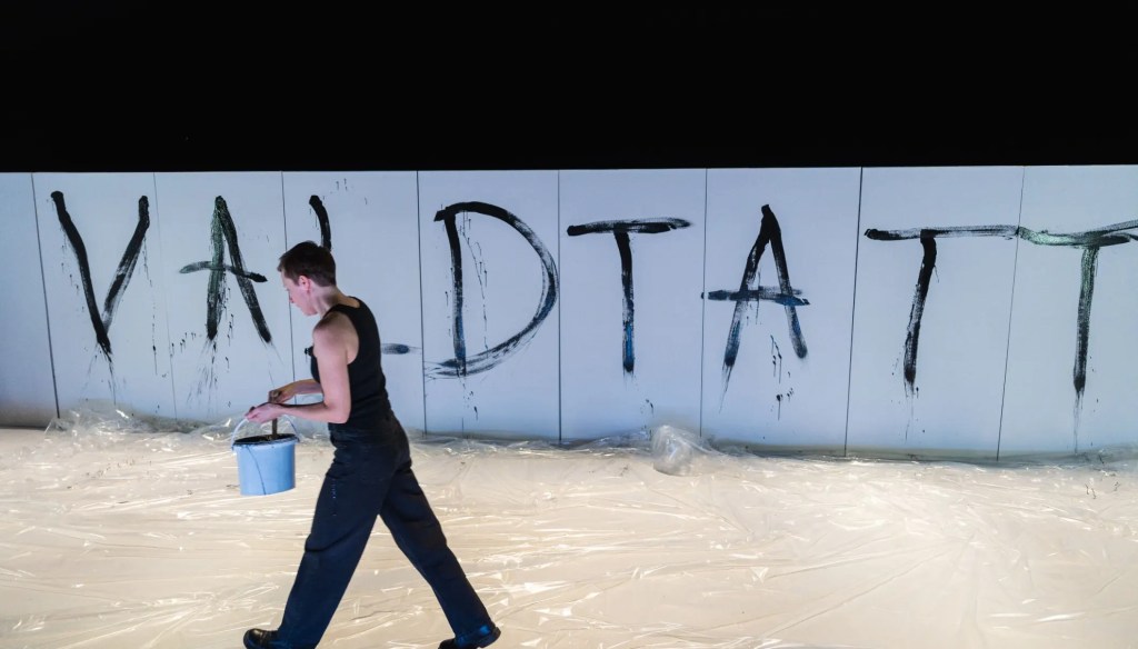 Julia Marko-Nords regi er noko enkel og svak. Spelet er stort sett frontalt med snev av «in-yer-face»-estetikk. Ho/eg har noko ho må fortelje oss. Regien og spelet understrekar at det er naudsynt. Marko-Nord er òg sjølv skodespelar og har tidlegare jobba saman med Refseth på Stockholms Stadsteater. Refseths spel veks gjennom framsyninga. Ho kastar snart av seg den grå, mjuke genseren og gyv på med kraft og raseri. Ho malar med store, svarte bokstavar på pappveggane rundt ho: VALDTATT.