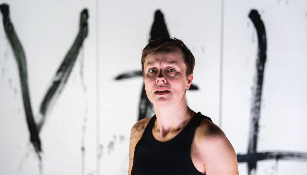 Kirsti Refseth er på scenen når vi kjem inn i teatersalen. Scenerommet er ein kvit boks. Veggane av kvitmåla papplater. Det verkar trongt, klaustrofobisk. Refseth har stor, grå genser, flate sko og elles svarte klede. Ho verkar noko utilpass. – Hei! seier ho. Lyset i salen er på. Eit par spreidde «hei» kjem frå publikum. Ho rører seg noko stivt, og vi synest litt synd på henne der ho er fanga i eit kvitt bur. I dei siste oppsetjingane er har sett med Refseth, har ho spela kvinne frå øvre middelklasse med suveren stålkontroll på seg sjølv og omgjevnadane. Mellom anna i Ellen Babić på Det Norske Teatret i fjor haust. Korleis skal no dette gå? Eg/ho i romanen er jo ikkje berre reflekterande, ho er rasande og sjølvutleverande.