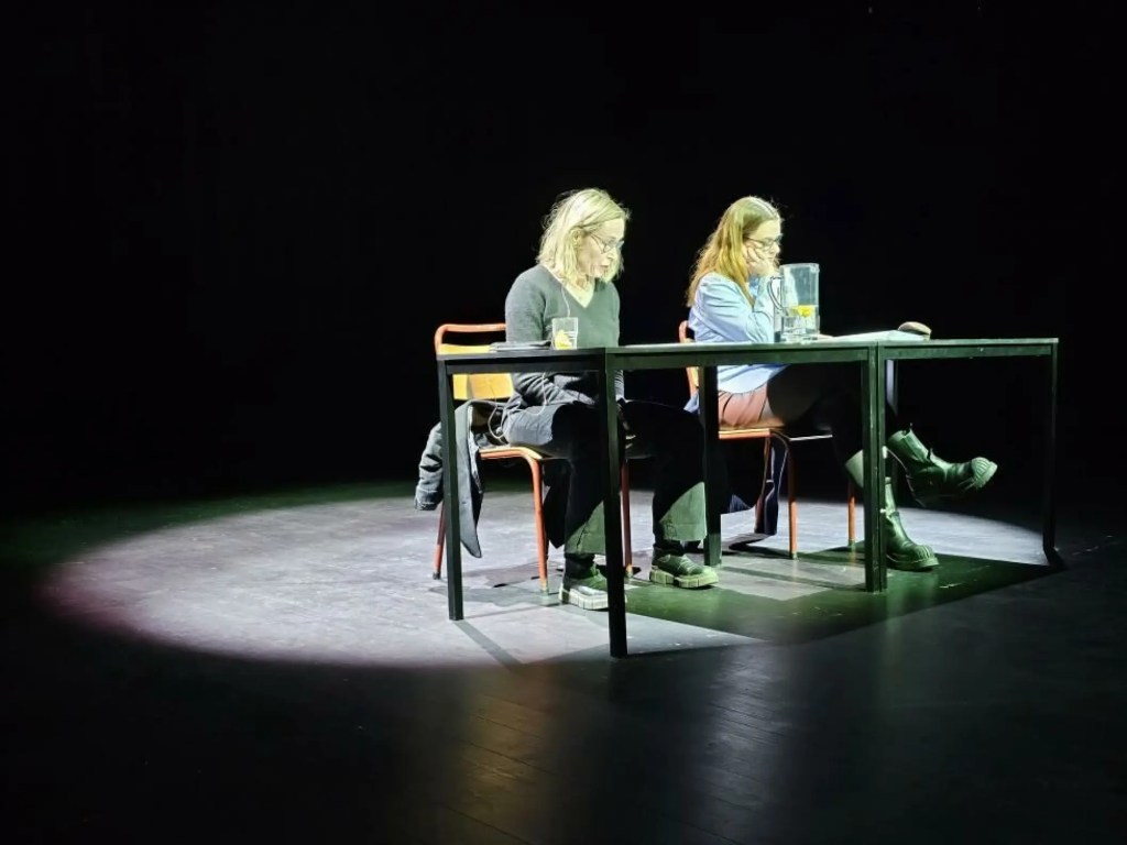 Trine Wiggen og Charlotte Frogner leser «Gjenferd – dette er ikke forenlig med menneskets sjel», Vega Scene 2024. Foto: Vibeke Harper