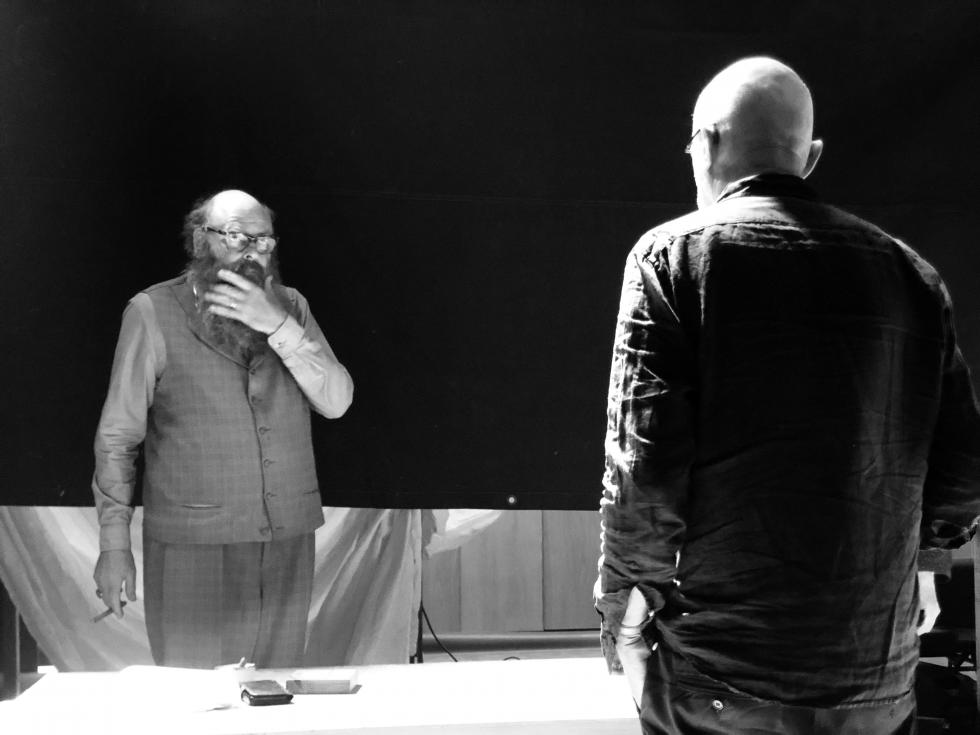 I andre enden av livet er Per Schaaning. Han kjem inn i rullestol som ein gamal mann. Er vi på eit eldresenter? Han blir bada av Hildegunn Riise og Heidi Gjermundsen Broch – er dei pårørande eller er dei pleiarar? Riise har røynsle frå mange Fosse-stykke. I Leve hemmeleg har ho og Schaaning har ein av desse Fosse-dialogane der dei prøvar og prøvar å få grepet om orda slik at dei kan dekkje det dei vil seie, men dei maktar det ikkje. Dei kjem til kort og snakkar forbi kvarandre. Det er smerteleg. Skodespelarane er ganske stilleståande eller stillesitjande i arbeidet med dialogane. Det understrekar det at dei på ein måte ikkje kjem nokon veg med snakket, men det gjer òg at framsyninga stoppar opp og blir litt vanskeleg å køyre i gang att etter dialogen.
